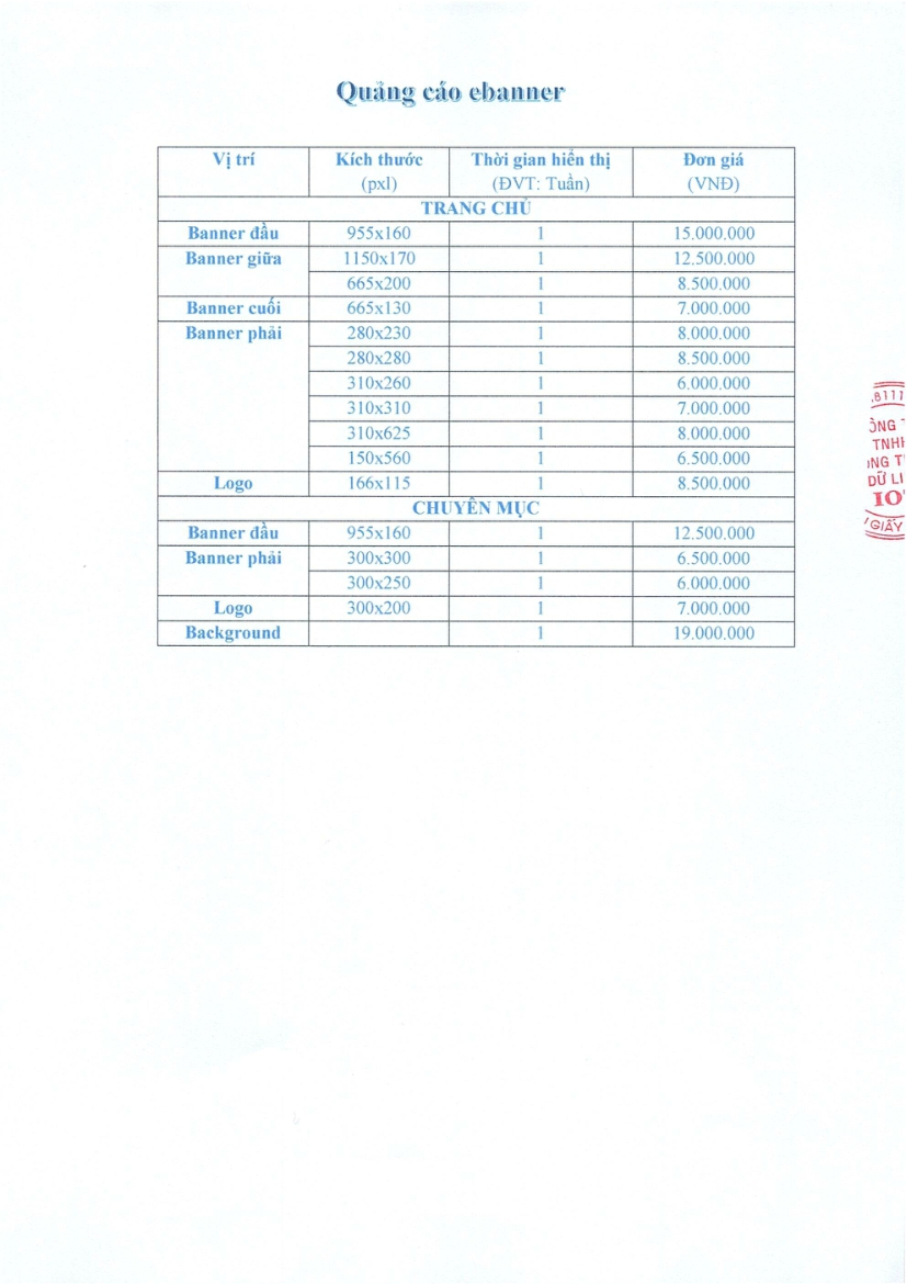 Báo giá quảng cáo 2026
