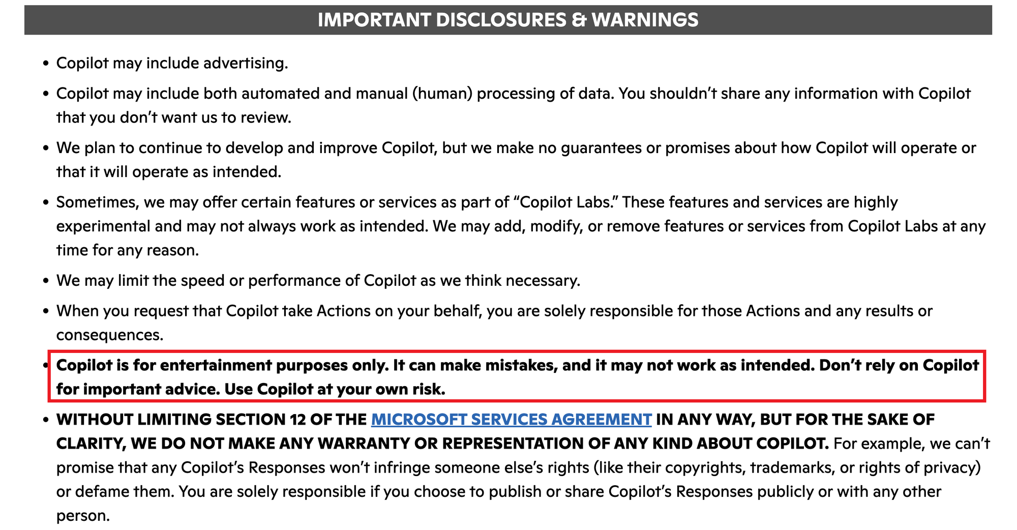 Thu phí từ doanh nghiệp, Microsoft thừa nhận AI Copilot chỉ dùng cho mục đích giải trí, đừng dùng cho việc quan trọng