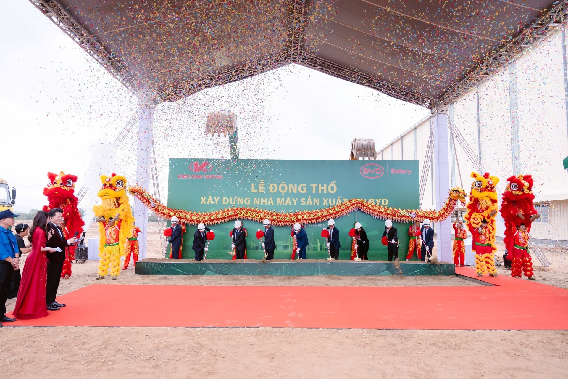 Sáng 27/1/2026, tại Khu công nghiệp sản xuất, lắp ráp KIM LONG MOTOR Huế, KIM LONG MOTOR đã ký kết hợp tác chiến lược với BYD BATTERY và động thổ xây dựng Nhà máy sản xuất Pin BYD.