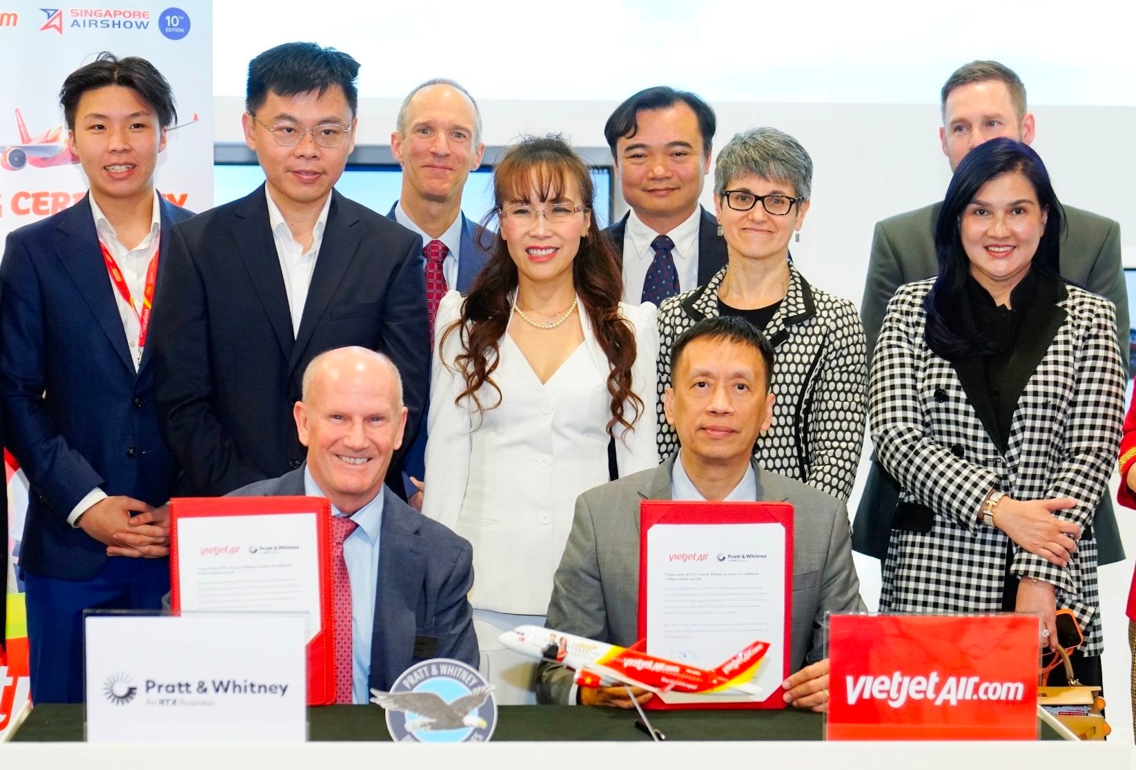 Trong khuôn khổ triển lãm hàng không Singapore Airshow 2026, Hãng hàng không Vietjet và Pratt & Whitney (thuộc tập đoàn RTX) đã chính thức công bố thỏa thuận cung cấp động cơ GTF cho 44 tàu bay dòng A320neo. Theo nội dung ký kết, số động cơ này sẽ được trang bị cho 24 tàu bay A321neo và 20 tàu bay A321XLR, nâng tổng số đơn đặt hàng tàu bay sử dụng động cơ GTF của hãng lên 137 chiếc.