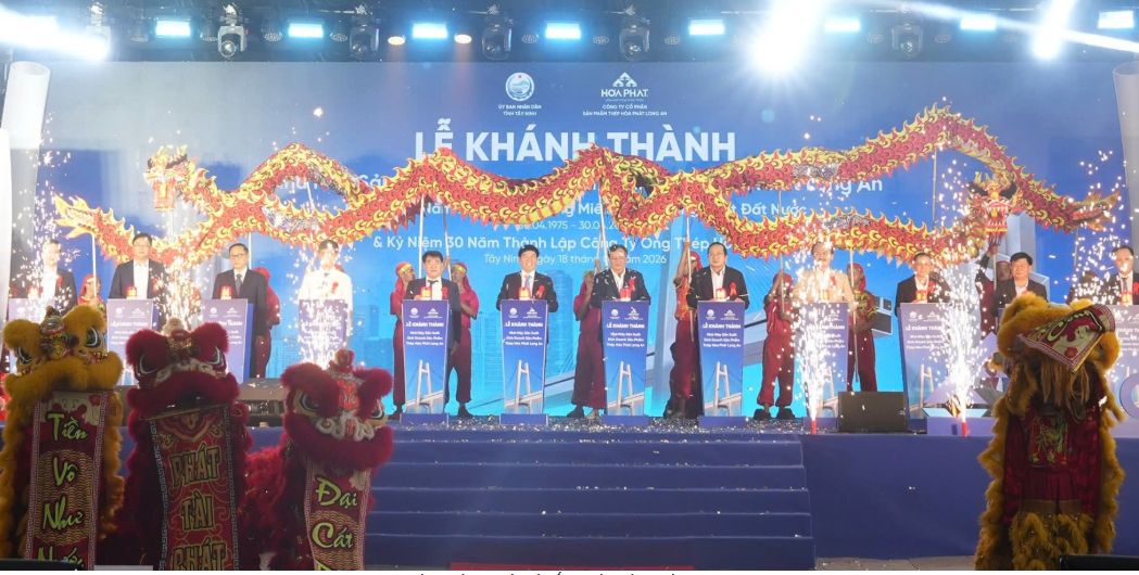 Sáng 18/4, Tập đoàn Hòa Phát tổ chức Lễ khánh thành Nhà máy ống thép Hòa Phát Long An tại Tây Ninh, đánh dấu bước tiến mới trong chiến lược mở rộng thị phần phía Nam và xuất khẩu. Dự án đi vào hoạt động đã nâng tổng công suất Ống thép Hòa Phát lên 1,2 triệu tấn/năm, giữ vững vị thế thị phần số 1 tại thị trường Việt Nam với gần 35%.