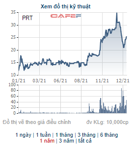 Diễn biến trên thị trường, cổ phiếu PRT đã tăng mạnh từ đầu năm 2021, từ vùng giá 12.400 đồng/cổ phiếu lên đến 34.000 đồng/cổ phiếu (đóng cửa phiên giao dịch ngày 15/12/2021), tương ứng mức tăng 174% trong gần 1 năm. Trong đó giai đoạn tăng mạnh nhất từ đầu tháng 9/2021.