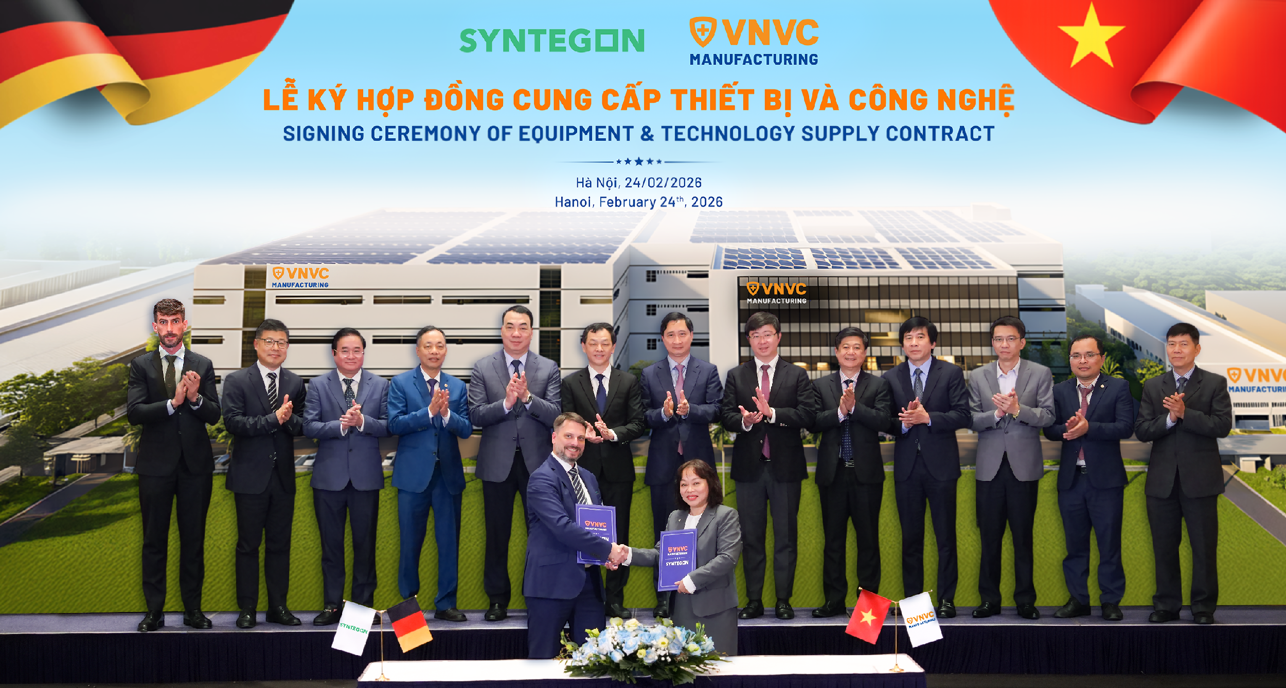 Ngày 24/02, tại Hà Nội, Công ty Vắc xin Việt Nam (VNVC) và Tập đoàn Syntegon (Đức) đã ký hợp đồng mua bán dây chuyền sản xuất vắc xin công suất lớn, công nghệ cao cho Nhà máy Vắc xin và Sinh phẩm VNVC, khởi công tháng 5/2025 tại Tây Ninh.