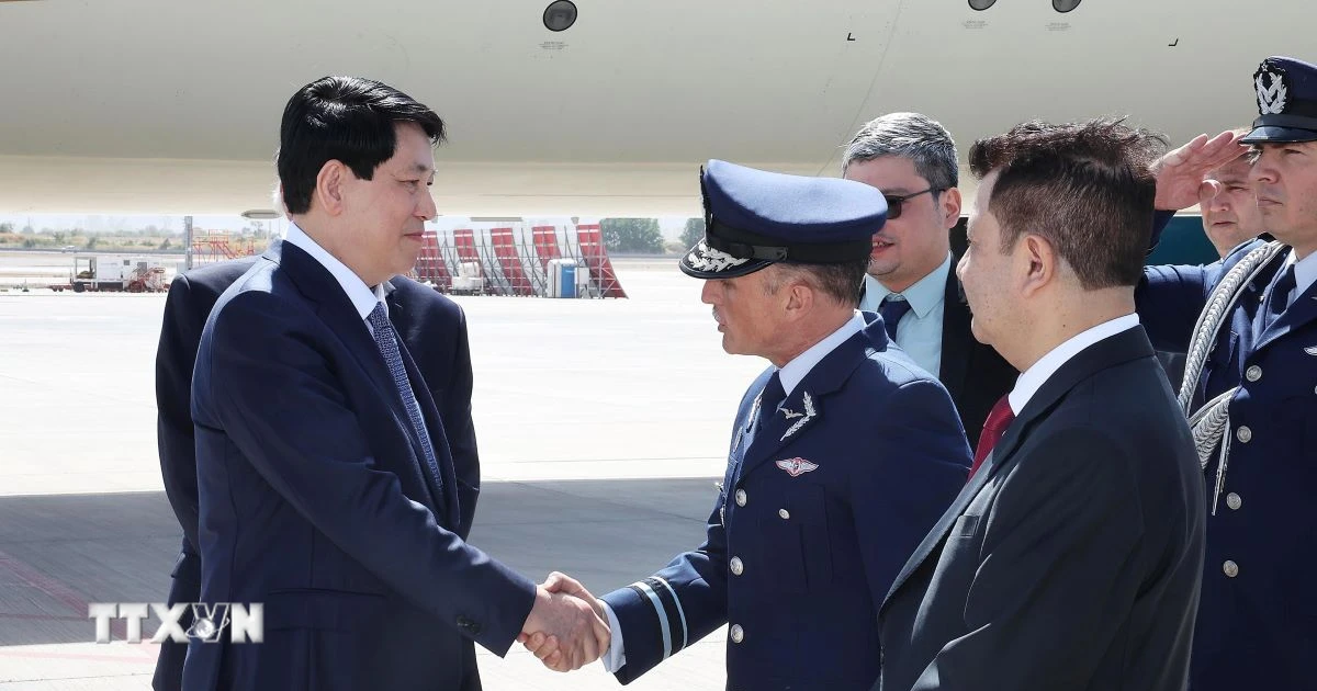 Lễ đón Chủ tịch nước Lương Cường tại Sân bay Quốc tế Santiago. (Ảnh: Lâm Khánh/TTXVN) |
