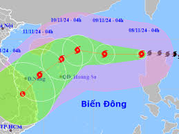 Theo Trung tâm dự báo khí tượng thủy văn quốc gia, lúc 4 giờ, sức gió mạnh nhất vùng gần tâm bão mạnh cấp 14 (150-166 km/h), giật cấp 17; di chuyển theo hướng Tây, tốc độ khoảng 15 km/h.