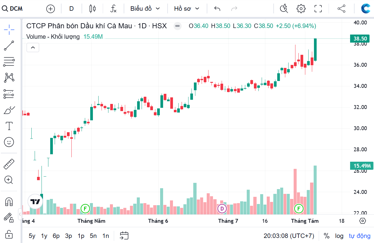 Trên thị trường chứng khoán, giá cổ phiếu DCM giao dịch quanh mức 38.500 đồng/CP và đang cho thấy dấu hiệu thu hút dòng tiền trở lại, đặc biệt trong bối cảnh doanh nghiệp tiếp tục duy trì tỷ lệ nợ vay thấp, dòng tiền ổn định và hiệu quả sản xuất khả quan.