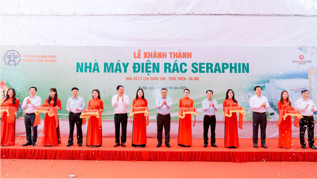 UBND thành phố Hà Nội và Tập đoàn AMACCAO vừa tổ chức khánh thành Nhà máy điện rác Seraphin, công suất 2.250 tấn/ngày, đêm tại tại khu xử lý chất thải rắn Xuân Sơn, phường Tùng Thiện.
