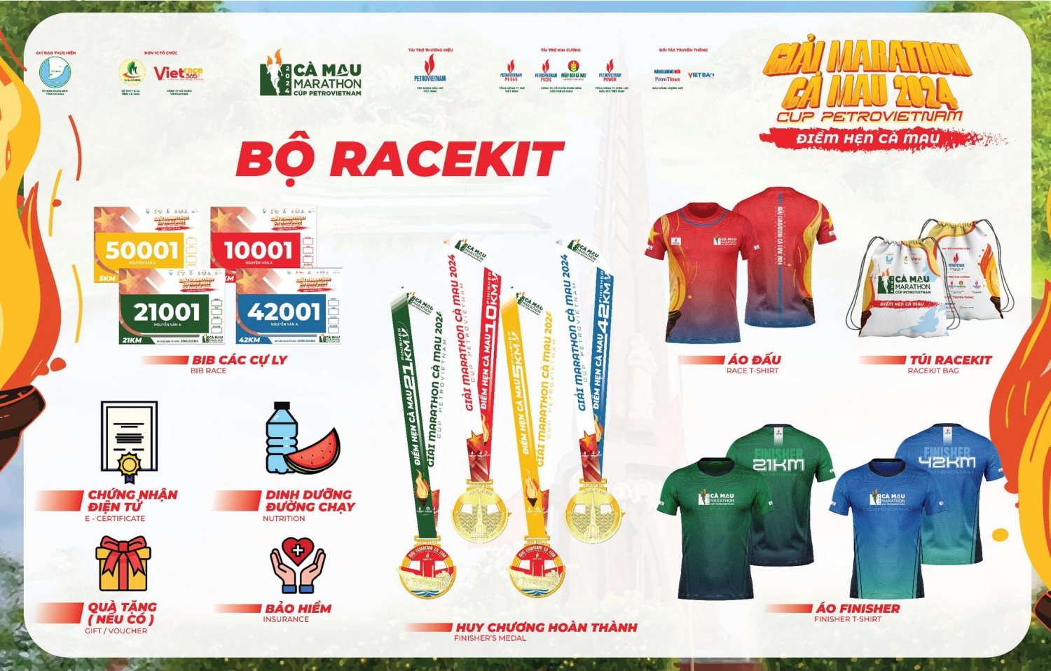 Bộ Race kit chính thức của giải Marathon - Cà Mau 2024 Cúp Petrovietnam. |