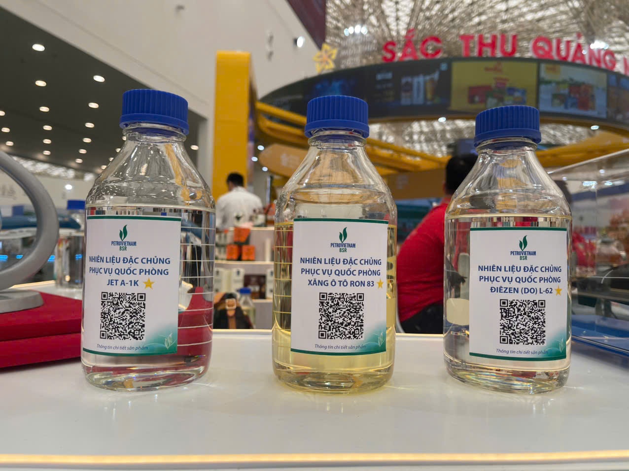 | Một số các sản phẩm tiêu biểu của BSR trưng bày tại hội chợ thu hút đông đảo khách người tham quan, tìm hiểu như nhiên liệu hàng không bền vững (SAF), nhiên liệu đặc chủng quốc phòng… |
