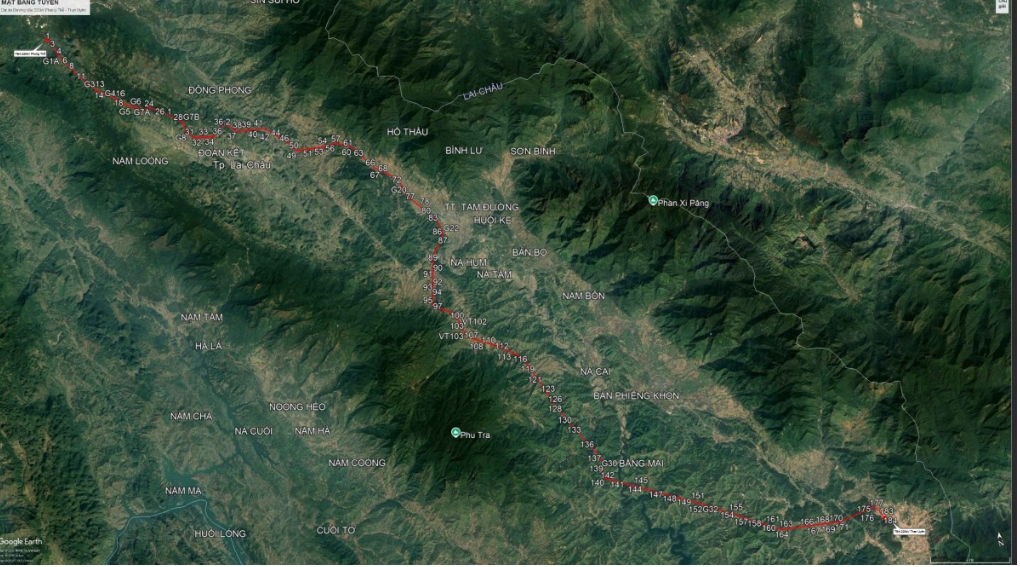 | Mặt bằng tuyến đường dây 220 kV Phong Thổ - Than Uyên. |