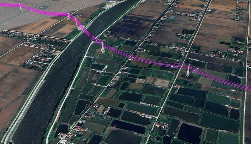 | Phối cảnh mặt bằng tuyến dự án đường dây 220 kV Nam Định - Hậu Lộc. Ảnh:PECC1. |
