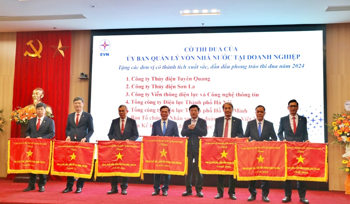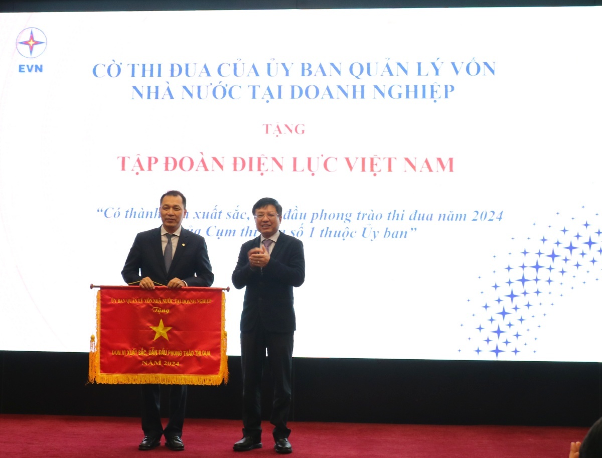 Tại hội nghị, Ủy ban Quản lý vốn nhà nước tại doanh nghiệp đã tặng Cờ thi đua cho Tập đoàn Điện lực Việt Nam vì “Thành tích xuất sắc, dẫn đầu phong trào thi đua năm 2024 trong Cụm Thi đua số 1 thuộc Ủy ban”. Ủy ban Quản lý vốn nhà nước tại doanh nghiệp cũng tặng Cờ thi đua cho các đơn vị thành viên của EVN có thành tích tốt trong năm qua. Đồng thời, Tập đoàn Điện lực Việt Nam đã trao Cờ thi đua, Bằng khen tuyên dương các đơn vị, tập thể hoàn thành xuất sắc nhiệm vụ năm 2024.