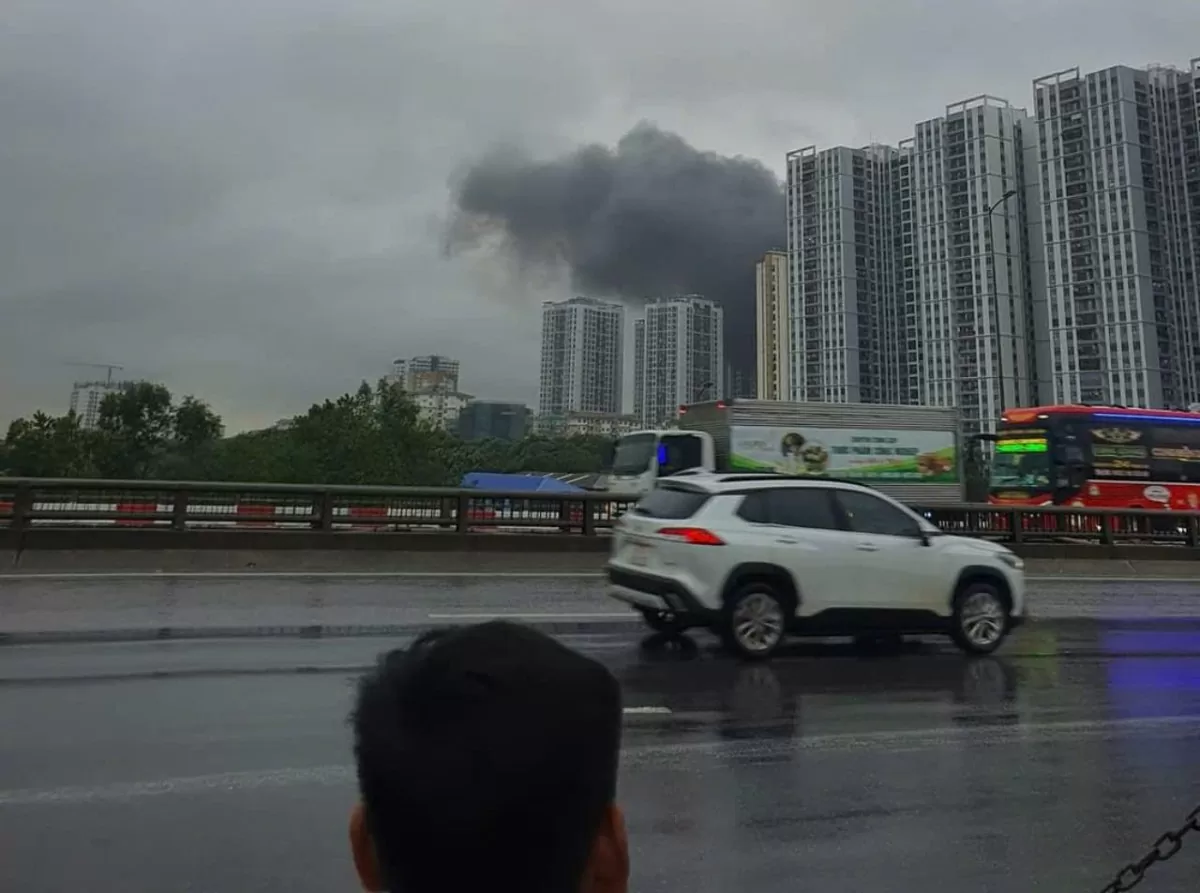 Hà Nội: Cháy lớn tại quận Hoàng Mai, cột khói ngùn ngụt giữa trời mưa