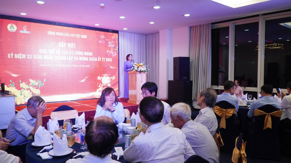 Chiều ngày 10/12, tại TP HCM, Công đoàn Dầu khí Việt Nam (CĐ DKVN) tổ chức Chương trình gặp mặt các thế hệ cán bộ công đoàn khu vực phía Nam nhân kỷ niệm 33 năm Ngày thành lập CĐ DKVN (16/12/1991 – 16/12/2024) và mừng Xuân Ất Tỵ 2025.