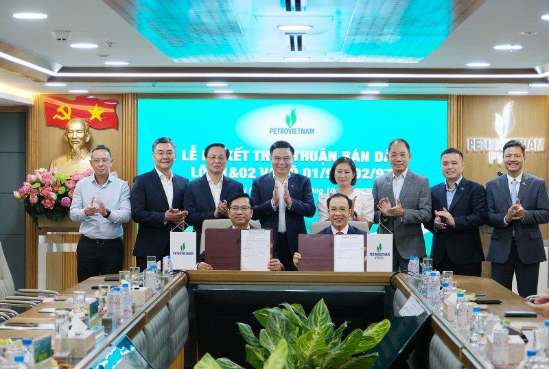 | Dưới sự chứng kiến của lãnh đạo Tập đoàn, ngày 17/10/2025, đại diện Ban điều hành Dự án Lô 01&02, Ban điều hành Dự án Lô 01/97&02/97 và PVOIL đã ký kết thỏa thuận bán dầu. Nguồn: PVOIL. |