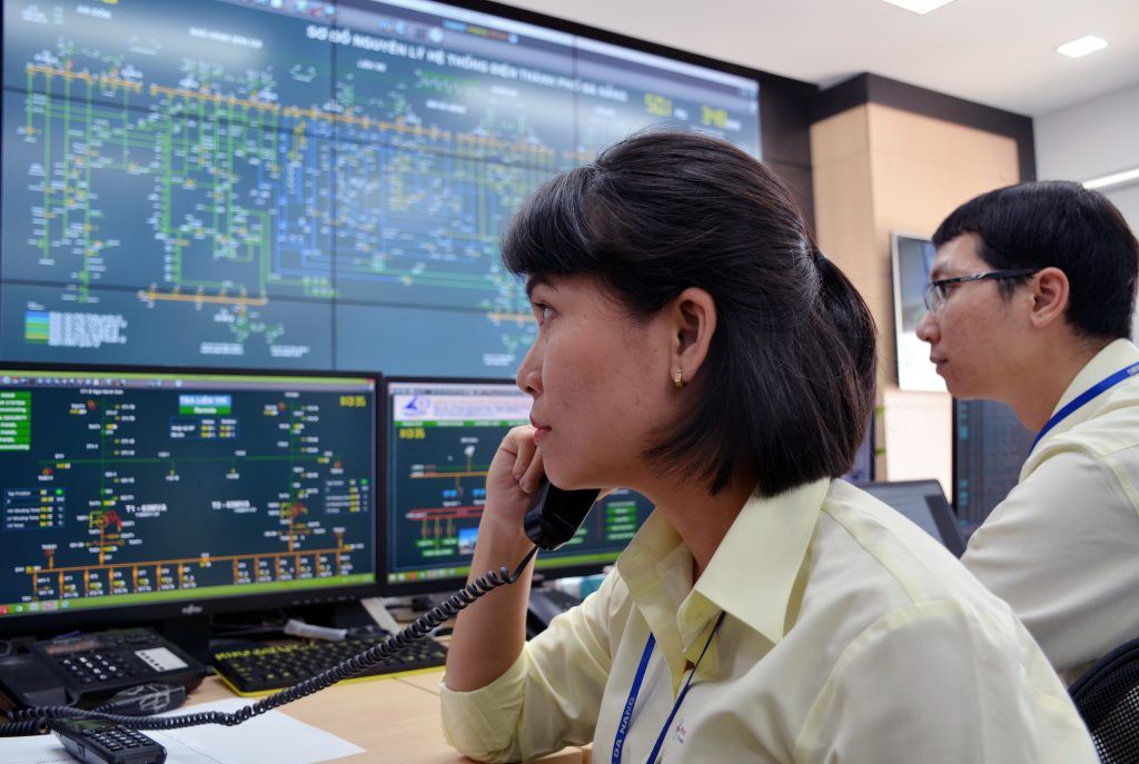 Các kỹ sư của PC Đà Nẵng làm việc tại Trung tâm quản lý vận hành lưới điện thông minh