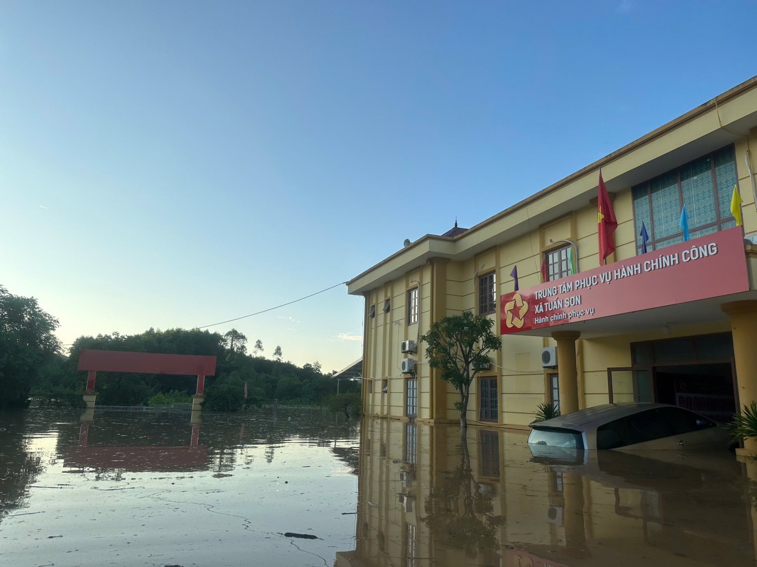 | Bão lũ làm ngập nhiều công trình Nhà nước và nhà cửa của người dân gây thiệt hại lớn về tài sản |