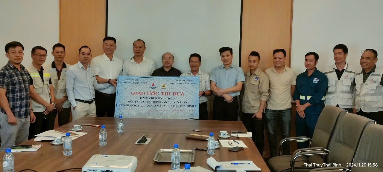 Nhằm phát huy tinh thần hăng say lao động của đội ngũ CBCNV, tạo nên khí thế thi đua sôi nổi, khơi dậy nội lực và phát huy tính năng động, sáng tạo, đoàn kết, gương mẫu, tinh thần trách nhiệm, bản lĩnh nghề nghiệp của đội ngũ CBCNV, Ban QLDA ĐLDK Thái Bình 2, Tổng thầu EPC PETROCONs và nhà thầu tham gia xây dựng Dự án NMNĐ Thái Bình 2, cam kết phấn đấu đưa Hệ thống vận chuyển than, Kho than số 3 hoàn thành đúng tiến độ, đảm bảo an toàn, chất lượng.