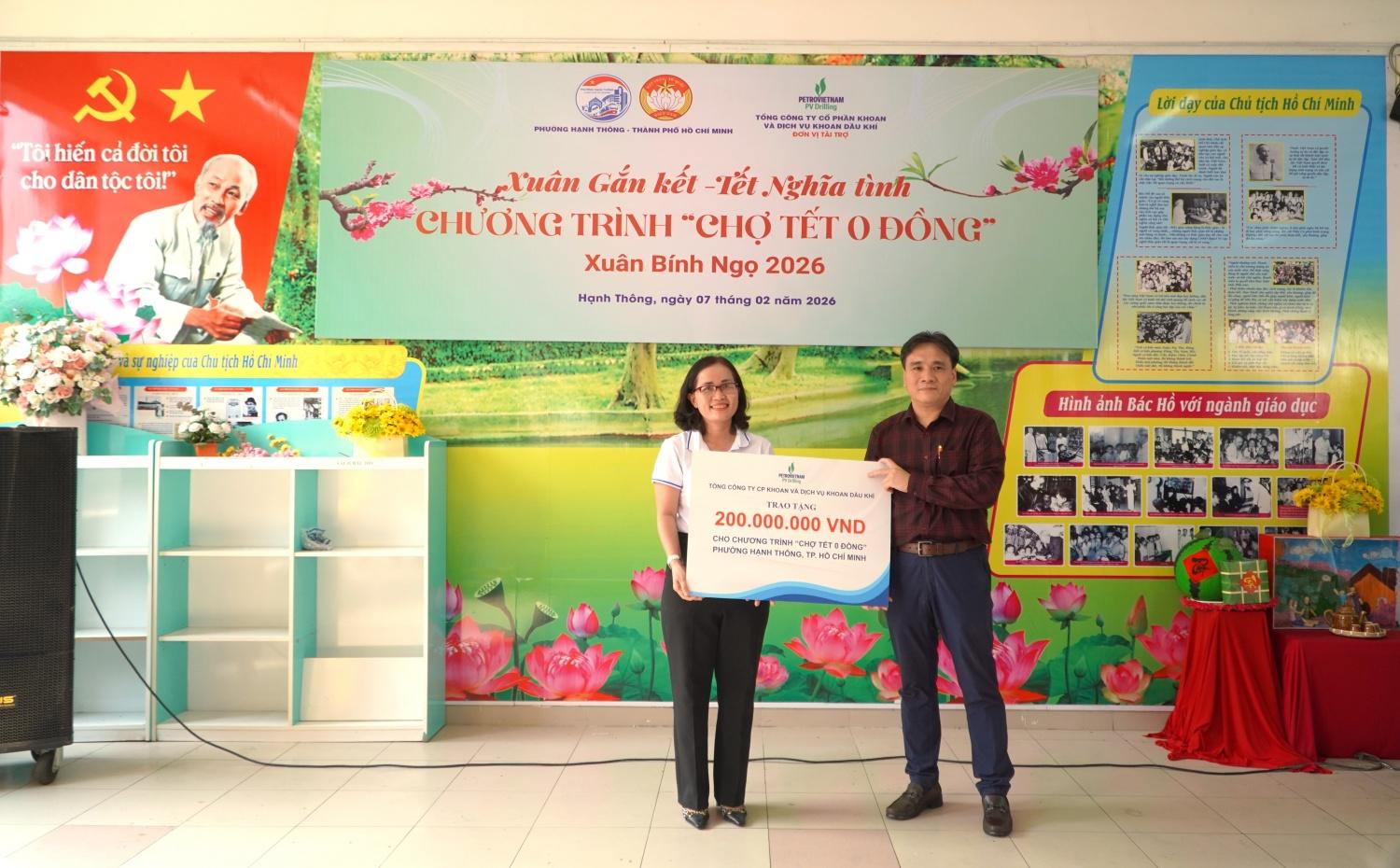 Vào chiều ngày 7/2 (ngày 20 tháng Chạp), PV Drilling phối hợp cùng Ủy ban MTTQ Việt Nam phường Hạnh Thông (TP HCM) trao 400 phiếu mua hàng cho 400 hộ có hoàn cảnh khó khăn trên địa bàn, để bà con tham gia chương trình “Chợ Tết 0 đồng”.