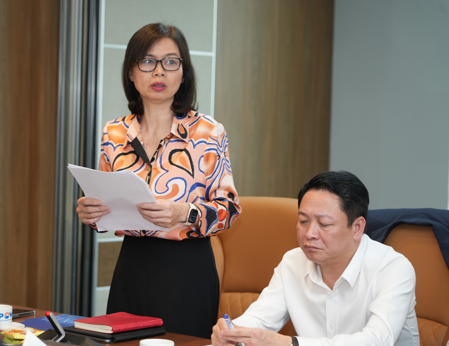 | Đồng chí Ngô Hồng Vân - Ủy viên Ban Thường vụ phụ trách công tác xây dựng Đảng, Chủ tịch Công đoàn PV Power báo cáo về công tác xây dựng Đảng thời gian qua. |