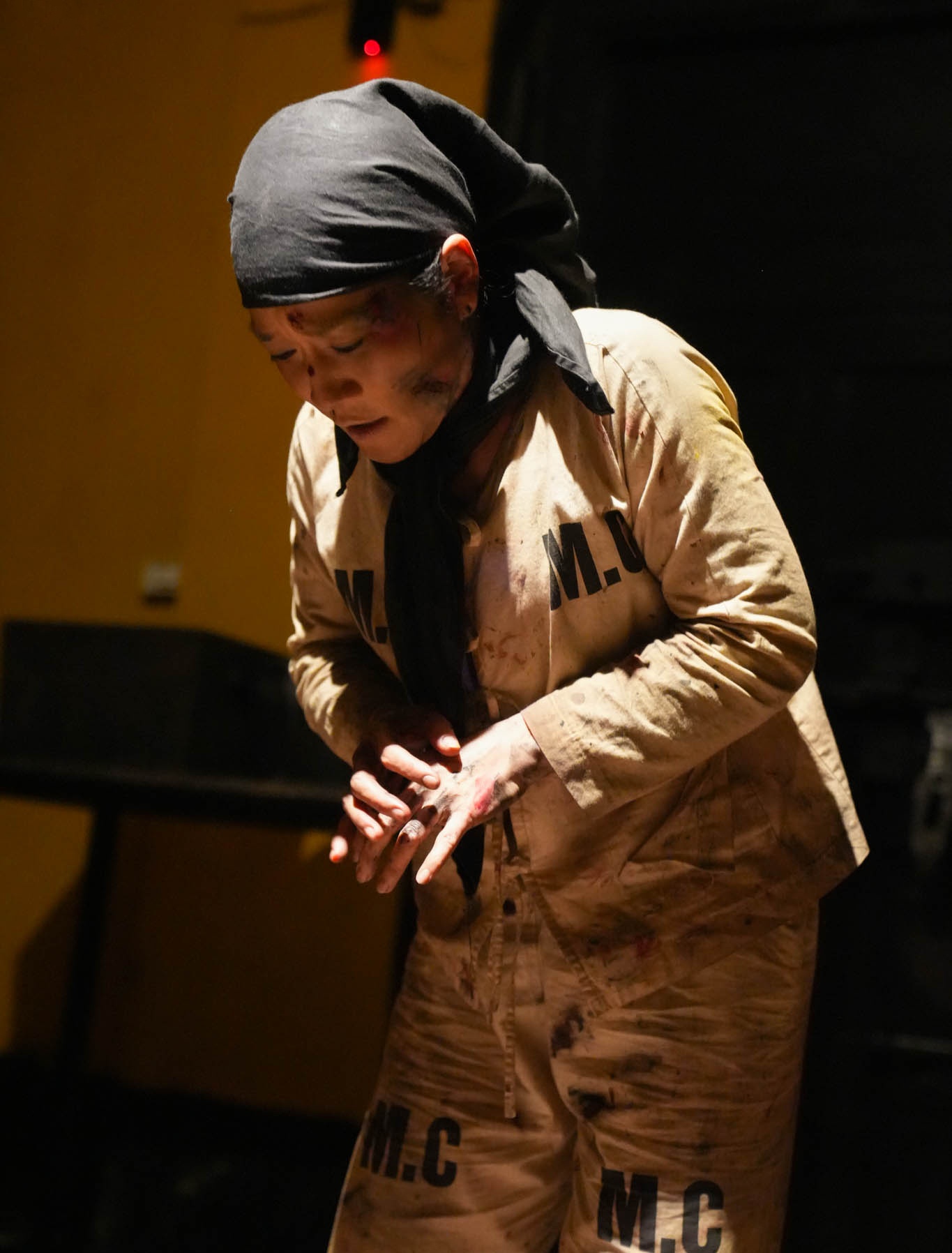 | Các diễn viên hóa thân thành nhân vật tù nhân kể lại điều kiện sinh hoạt cùng những hoạt động cách mạng tại Nhà tù Hỏa Lò. |