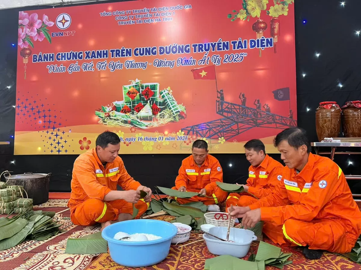 Anh Đậu Đình Đức, Đội truyền tải điện thành phố Hà Tĩnh chia sẻ, tôi có 16 năm gắn bó truyền tải, cũng gần như là 16 năm gói bánh chưng. Năm nào thì đội và đơn vị cũng có tổ chức cho cán bộ, công nhân viên vui Xuân đón Tết, gói bánh chưng và tổ chức các hoạt động để nhằm góp vui cũng như là động viên cán bộ, công nhân viên hoàn thành các nhiệm vụ cũng như quản lý, vận hành để đóng viên tinh thần anh em, phấn đấu trong năm tiếp theo sẽ hoàn thành nhiệm vụ