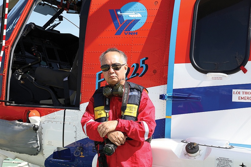 | Nhà báo Nguyễn Như Phong tại công trình dầu khí biển |