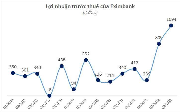 Chi phí dự phòng rủi ro quý 2/2022 của Eximbank cũng chỉ tăng 6% lên 130 tỷ. Nhờ vậy, ngân hàng báo lãi quý 2 năm nay cao gấp 3 lần cùng kỳ năm 2021.