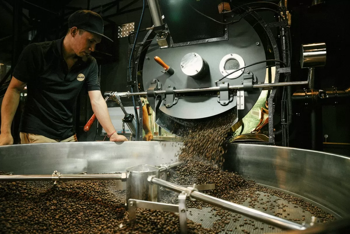 Những hạt cà phê được rang xay, chuẩn bị đóng gói thành phẩm. Ảnh: Cẩm Thảo |