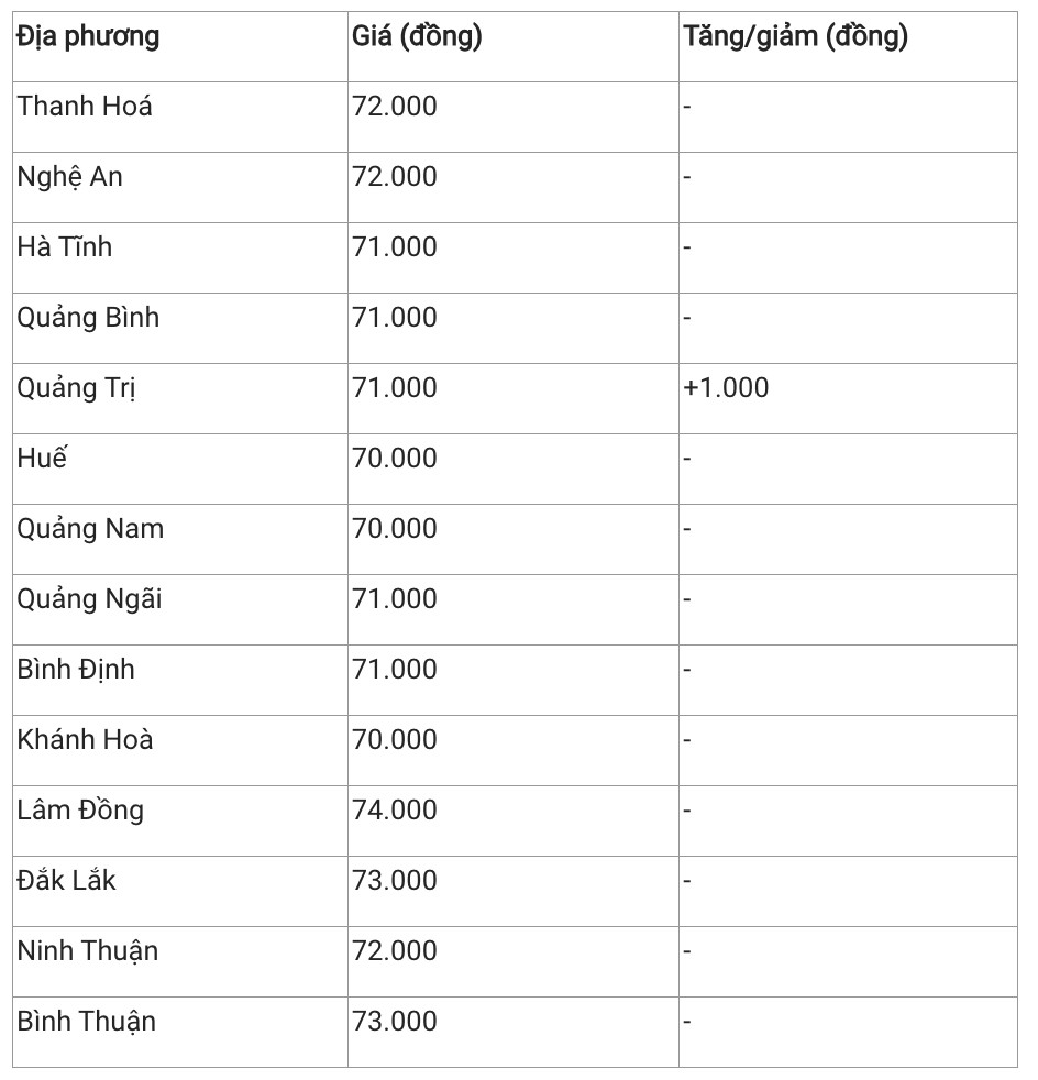 Hiện, giá heo hơi khu vực này dao động trong khoảng 70.000 – 74.000 đồng/kg. Lâm Đồng đang là địa phương có giá cao nhất khu vực với 74.000 đồng/kg. Ngược lại, Huế và Quảng Nam bán heo hơi thấp nhất khu vực với mức 70.000 đồng/kg.