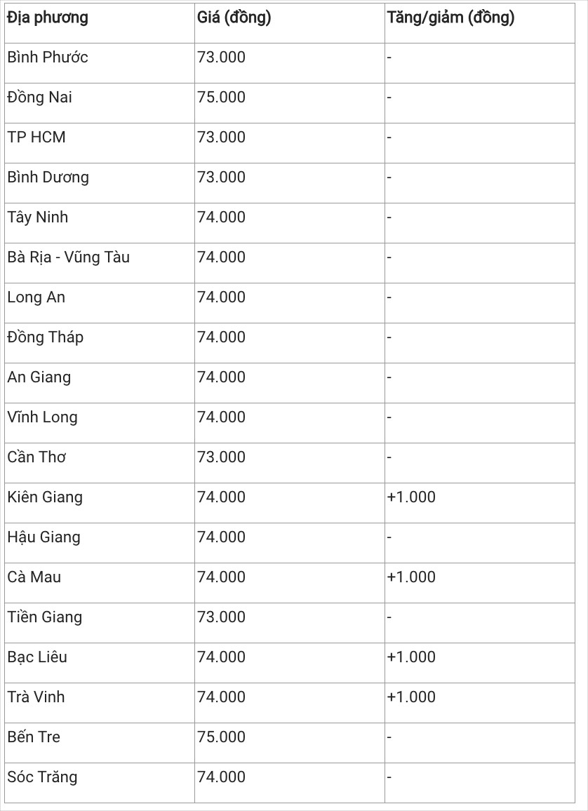 Hiện giá heo hơi khu vực này vẫn duy trì dao động 73.000 – 75.000 đồng/kg. Trong đó Đồng Nai và Bến Tre thiết lập mức giá cao nhất cả nước với 75.000 đồng/kg. Các địa phương còn lại có giá heo hơi dao động 73.000 - 74.000 đồng/kg.