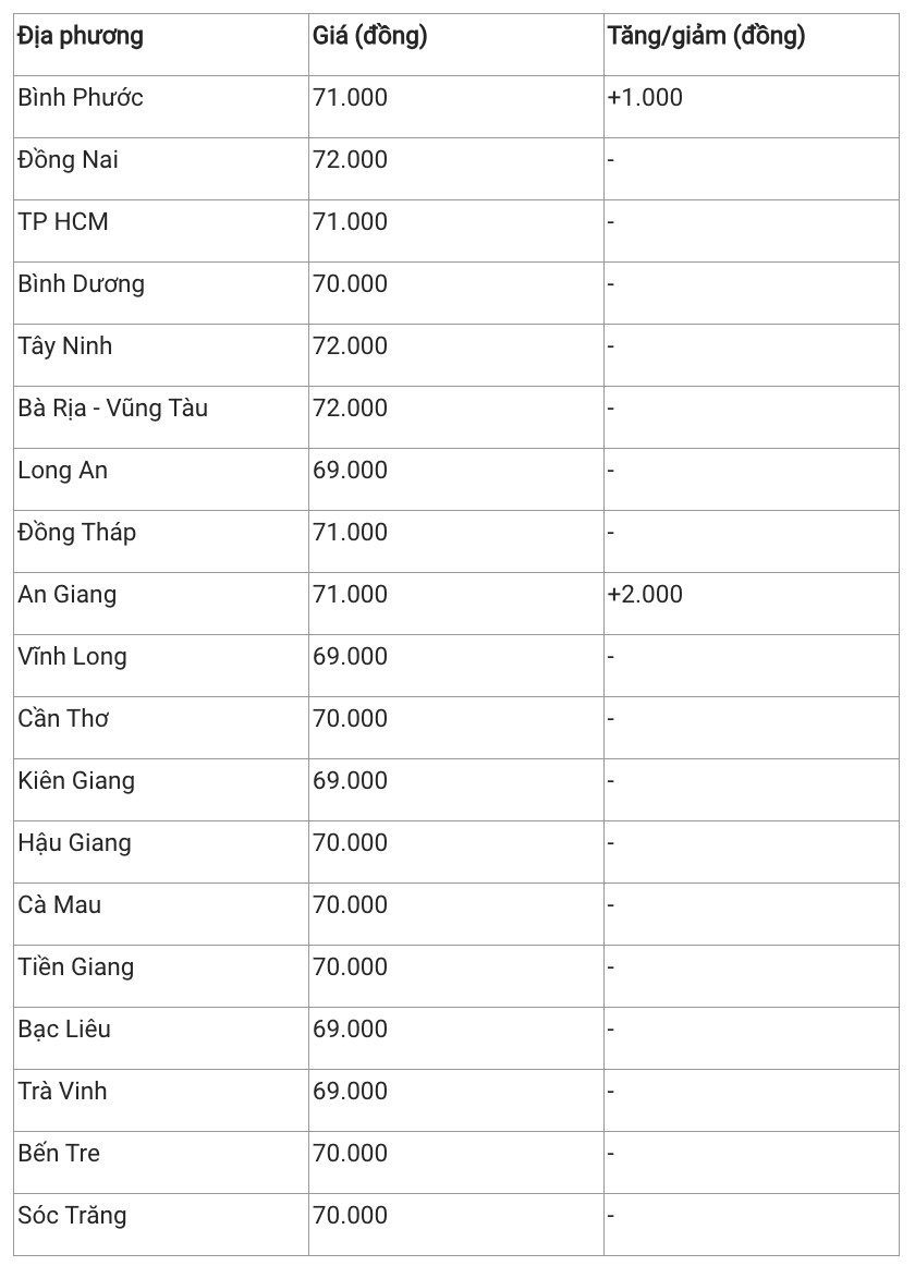 Hiện giá heo hơi khu vực này vẫn duy trì dao động 69.000 – 72.000 đồng/kg. Trong đó, Đồng Nai, Vũng Tàu và Đồng Tháp, là mức giá cao nhất cả nước với mức giá 71.000 đồng/kg