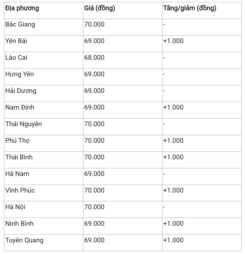 Hiện giá heo hơi khu vực này đang dao động trong khoảng 68.000 - 70.000 đồng/kg. Trong đó, Lào Cai là địa phương duy nhất trong khu vực có giá heo hơi thấp nhất với 68.000 đồng/kg.