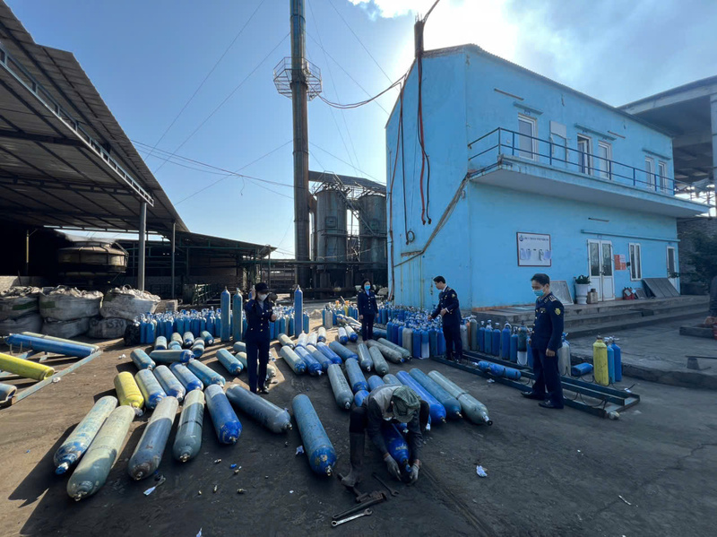 Đối với nhóm hàng hóa gồm 94 bình chứa khí N₂O, 404 vỏ bình, 1 máy hàn nhiệt, 4 máy dệt, 2 máy bắn date laser kim phun, 2 máy dập date QDFW-125, 1 máy cắt tem nhãn và 2 trụ bơm xăng di động, các tang vật được phá dỡ bằng thiết bị chuyên dụng (máy xích, máy cẩu…) nhằm phá hủy hình dạng ban đầu, phần kim loại sau đó được thu hồi, xử lý theo quy định.