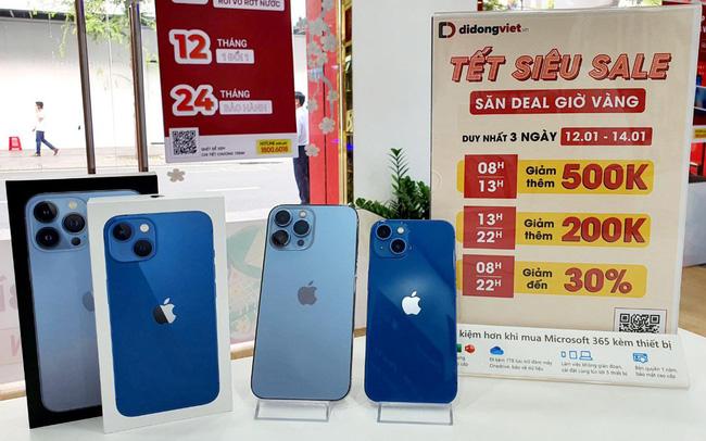 Ghi nhận từ hệ thống Di Động Việt - Đại lý ủy quyền chính thức của Apple tại Việt Nam (AAR), càng gần Tết Nguyên Đán, càng nhiều khách hàng sắm iPhone 13 series để đi chơi năm mới, làm quà Tết do tính thiết thực cũng như giá trị,... Cùng với xu hướng Trade-in thu cũ đổi mới và thanh toán nhiều lần thông qua trả góp 0% lãi suất vừa tiết kiệm, vừa bớt áp lực tài chính đã đưa iPhone 13 series lên ngôi, doanh số bán ra liên tục tăng.