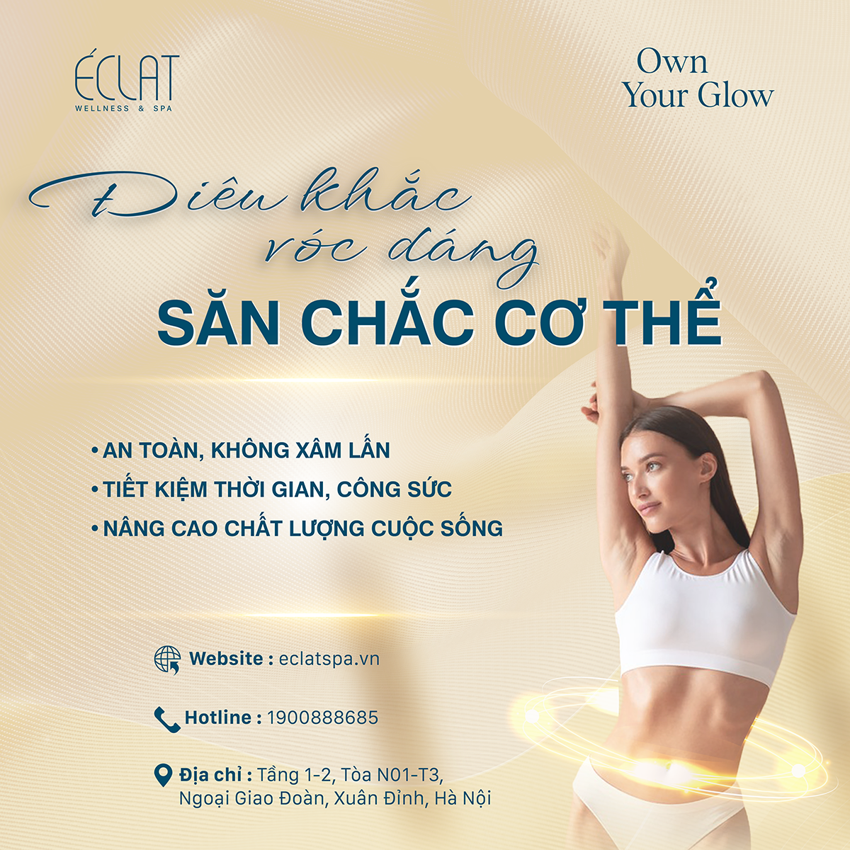 Tại Éclat, chúng tôi hiểu rằng mỗi cơ thể là một tác phẩm nghệ thuật. Thay vì chỉ giảm mỡ một cách đơn thuần, chúng tôi tập trung vào việc điêu khắc và tạo hình cơ thể để đạt được tỉ lệ vàng hoàn hảo nhất cho riêng bạn.