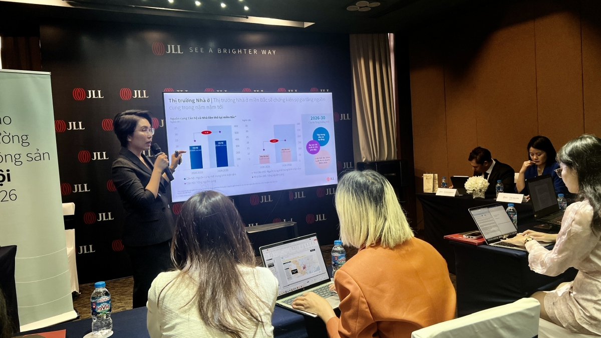 Tại buổi họp báo về thị trường bất động sản Hà Nội quý I/2026, chia sẻ về câu chuyện đang thu hút sự quan tâm của thị trường hiện nay là nguồn cung bất động sản nhà ở, bà Lê Thị Huyền Trang, Tổng Giám đốc JLL Việt Nam nhấn mạnh, nếu như trong 5 năm trước, mỗi năm thị trường đón nhận dưới 20.000 căn, thì trong 5 năm tiếp theo, nguồn cung dự báo sẽ đạt hơn 23.000 căn mỗi năm.