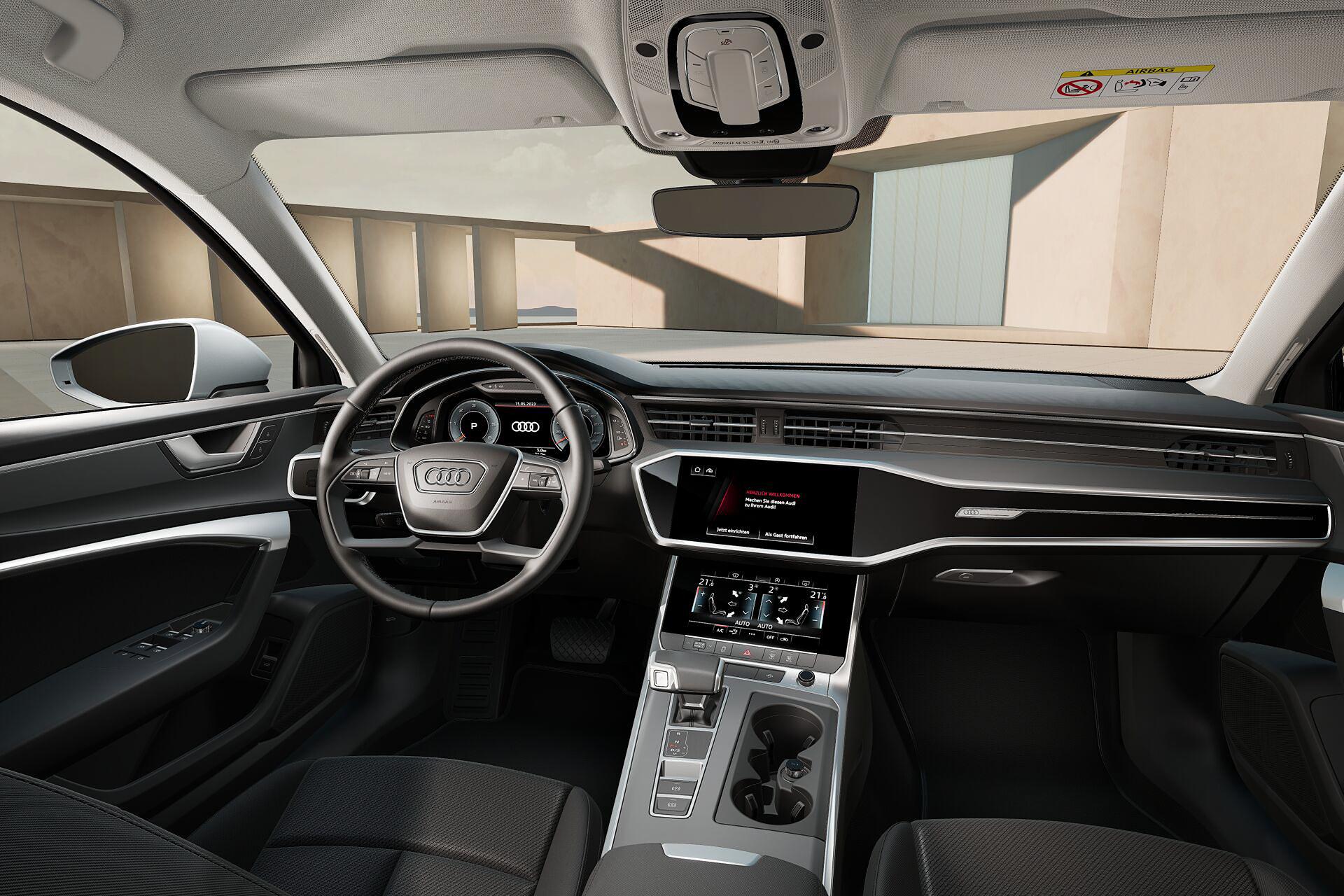 Ở trung tâm là màn hình cảm ứng MMI Touch Response kích thước 10,1 inch bên cạnh màn hình phụ trợ 8,6 inch có nhiệm vụ điều chỉnh các tính năng của hệ thống điều hòa 4 vùng và các tính năng tiện nghi khác. Khu vực bảng điều khiển trung tâm nghiêng nhiều về phía người lái kết cùng các phím chức năng chế tạo bằng chất liệu đen bóng.