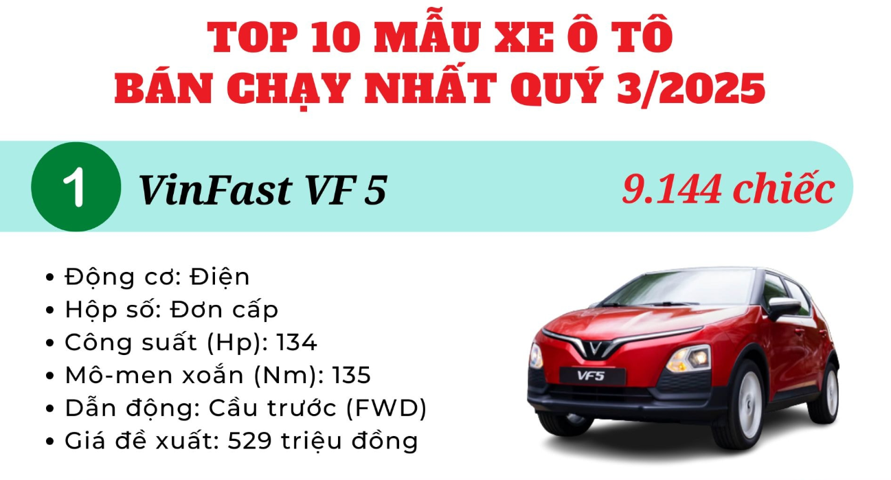 Top 10 ô tô bán chạy nhất Việt Nam quý 3/2025
