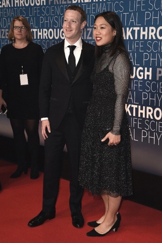 Năm 2019, Zuckerberg và Chan cùng xuất hiện trên thảm đỏ Breakthrough Prize với trang phục tông đen đồng điệu. Chan mặc áo khoác vest bên ngoài váy đen trơn. Zuckerberg vẫn chọn vest đen nhưng thay cà vạt quen thuộc bằng nơ đeo cổ.