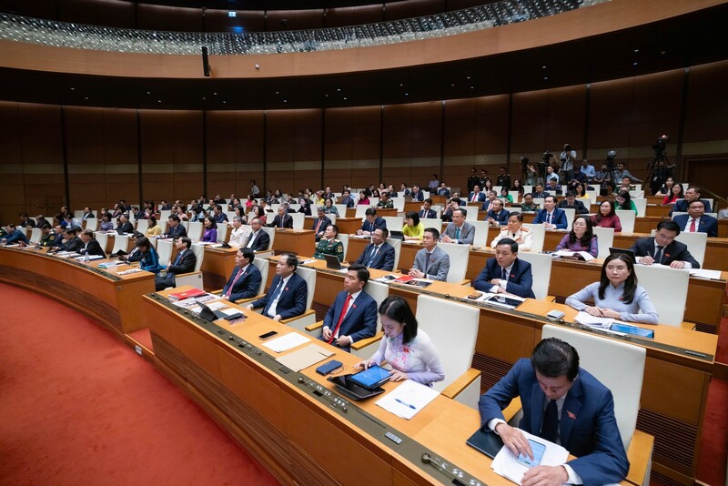Sau đó, Quốc hội biểu quyết thông qua Nghị quyết về cơ cấu tổ chức của Chính phủ nhiệm kỳ Quốc hội khóa XVI bằng hệ thống biểu quyết điện tử.