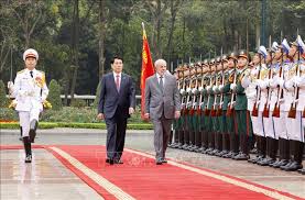 Đoàn xe hộ tống đưa Tổng thống Lula da Silva tiến vào Phủ Chủ tịch, Chủ tịch nước Lương Cường có mặt tại thảm đỏ nồng nhiệt chào đón Tổng thống Lula da Silva dẫn đầu Đoàn cấp cao Brazil thăm cấp Nhà nước tới Việt Nam. Đại diện các cháu thiếu nhi thủ đô tiến tới trao tặng Tổng thống Lula da Silva bó hoa tươi thắm.