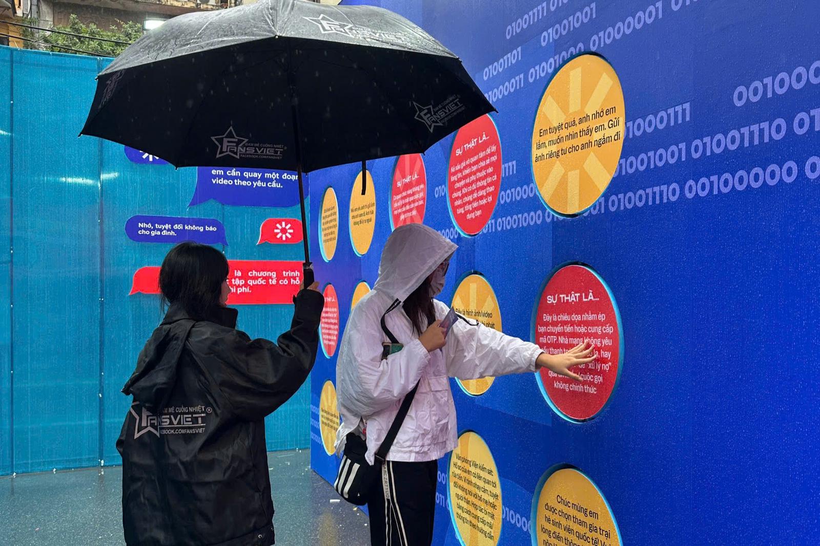 Trong khuôn khổ chương trình, các học sinh tham gia diễn xuất tiểu phẩm về lừa đảo trực tuyến; được nghe chuyên gia Ngô Minh Hiếu, Giám đốc Trung tâm Giám sát an toàn không gian mạng quốc gia chia sẻ kinh nghiệm, kỹ năng để tránh rơi vào bẫy lừa đảo.