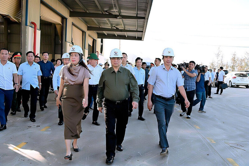 Đoàn công tác của Thủ tướng Chính phủ Phạm Minh Chính đến thăm và kiểm tra tình hình thiệt hại do bão số 13 tại Công ty Thức ăn chăn nuôi Fago. Ảnh: Đức Thụy