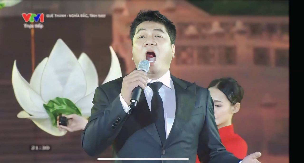 NSND Quốc Hưng (bên phải) và NSND Tạ Minh Tâm hòa giọng mashup hai ca khúc "Đất nước trọn niềm vui" và "Màu hoa đỏ" trong Lễ kỷ niệm, diễu binh, diễu hành 50 năm Ngày giải phóng miền Nam, thống nhất đất nước sáng ngày 30/4/2025.