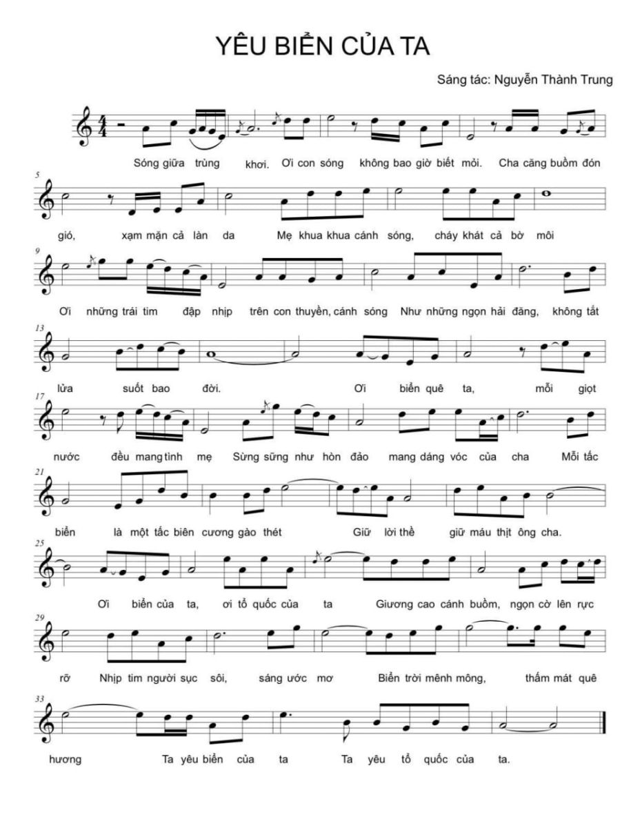 Trong dòng chảy của ca khúc Việt Nam hiện đại, đề tài biển đảo luôn mang một vị trí đặc biệt. Biển không chỉ là một không gian địa lý hay một nguồn sinh kế của cư dân ven bờ, mà còn là một biểu tượng văn hóa – lịch sử gắn với ý thức chủ quyền, ký ức cộng đồng và khát vọng vươn ra thế giới của dân tộc. Từ những ca khúc nổi tiếng như Nơi đảo xa, Tình ca biển, Biển hát chiều nay cho đến nhiều sáng tác mới trong những năm gần đây, biển thường xuất hiện như một trường cảm xúc nơi cá nhân và cộng đồng gặp nhau. Trong bối cảnh ấy, ca khúc “Yêu biển của ta” của nhạc sĩ Nguyễn Thành Trung do NSUT Hoàng Tùng thể hiện, nhạc sĩ Dương Đức Thuỵ phối khí, là một tác phẩm đáng chú ý, bởi nó kết hợp được hai dòng cảm xúc tưởng như khác biệt: một mặt là sự trữ tình mềm mại của đời sống ngư dân, mặt khác là âm hưởng sử thi của ý thức biên cương và chủ quyền quốc gia.